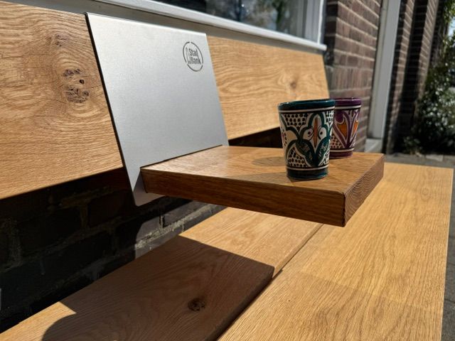 Breid je StadBank uit met een slim tafeltje. Binnen een paar seconden creëer je jouw plek om te ontspannen. De slanke RVS houder plaats je eenvoudig over de rugleuning, het blad schuif je in de gleuf en je bent klaar. Geen gedoe, alleen comfort en rust. Strak design dat altijd past.